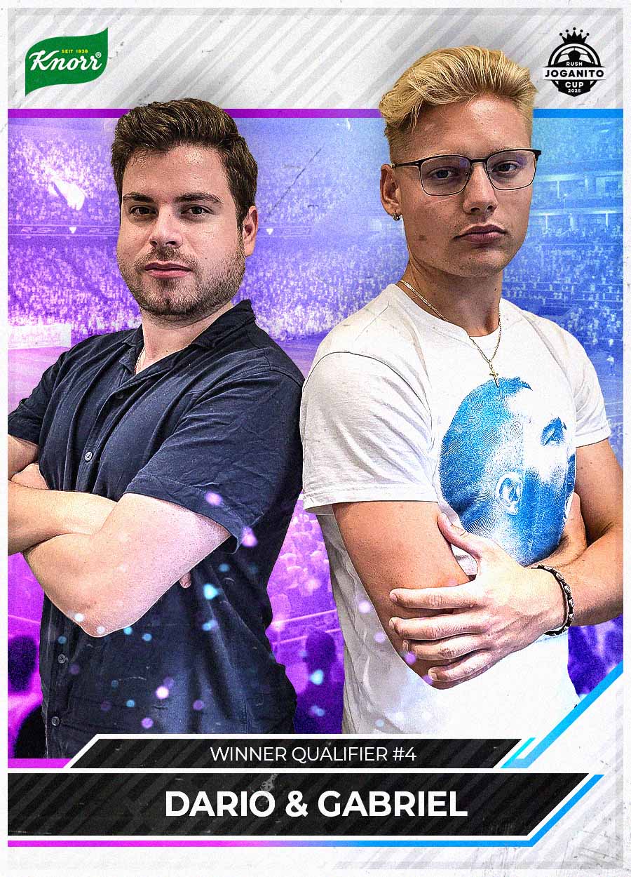 Pronti per il JOGANITO RUSH CUP 2VS2 POWERED BY KNORR? Insieme alla star dei social media Cubanito, stiamo cercando il miglior duo EA-FC della Svizzera! Quindi, prendi la tua metà migliore di EA-FC-25 e dimostrate insieme di poter affrontare chiunque.